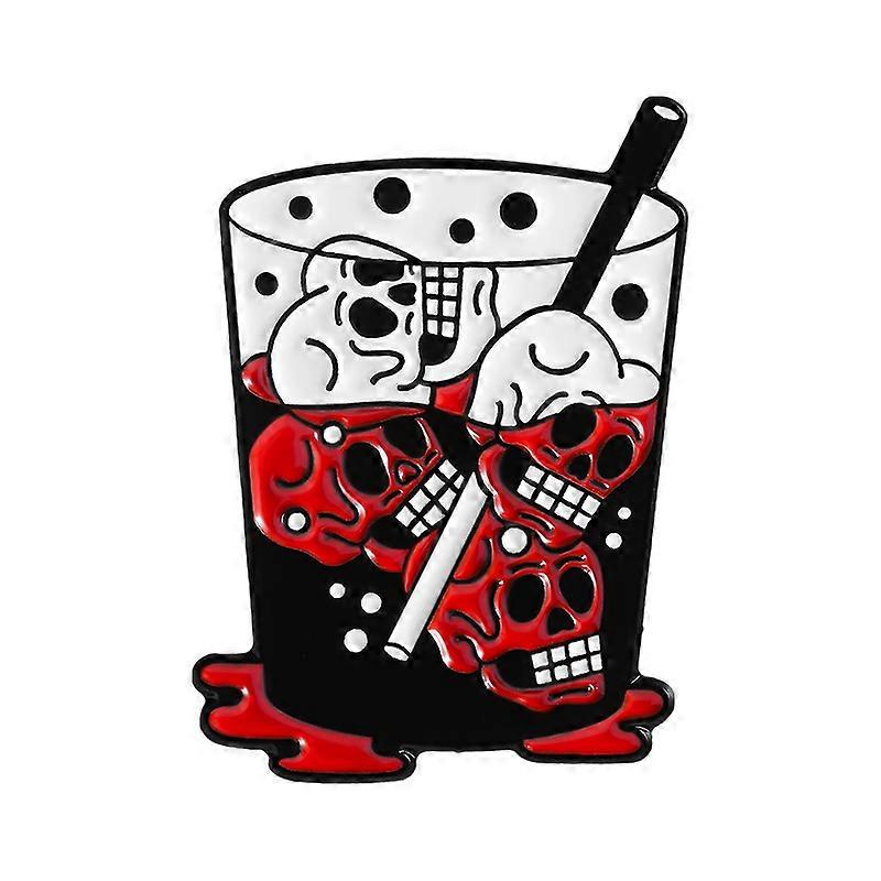 Red Skull Horror Drink Enamel Pin Drunk Forever Halloween Metal Brooches Lapel Badge Jewelry Accessories Gifts for Friends