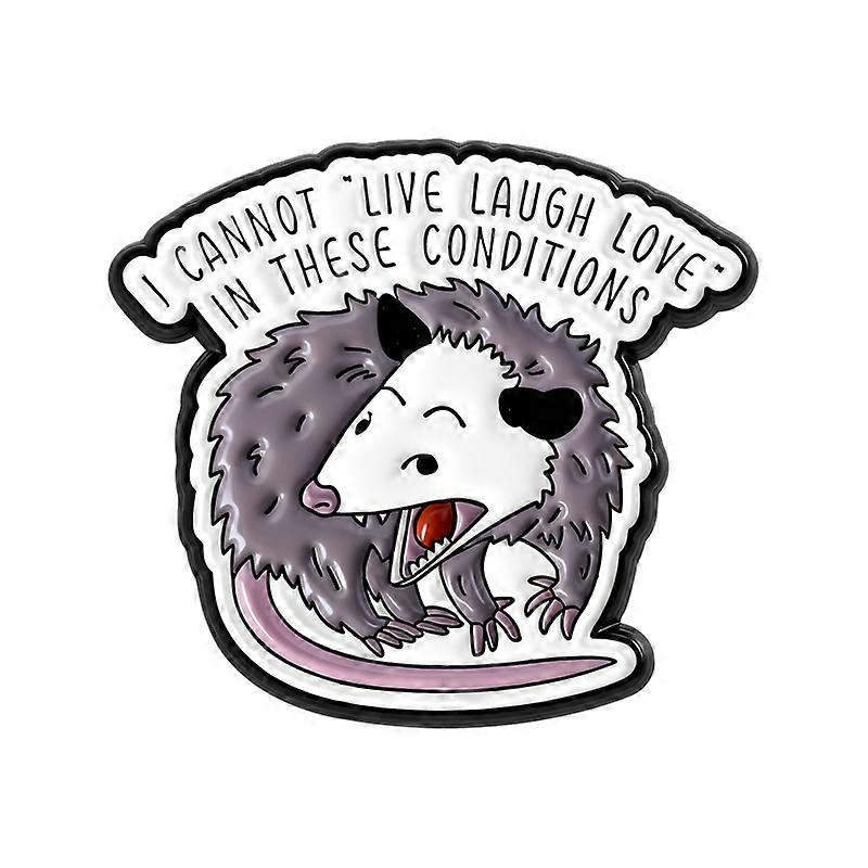 Funny Opossum Animal Enamel Pins I Can't Live Laugh Love In These Conditions I Am Good Kitty Brooches Lapel Badge Jewelry Gifts