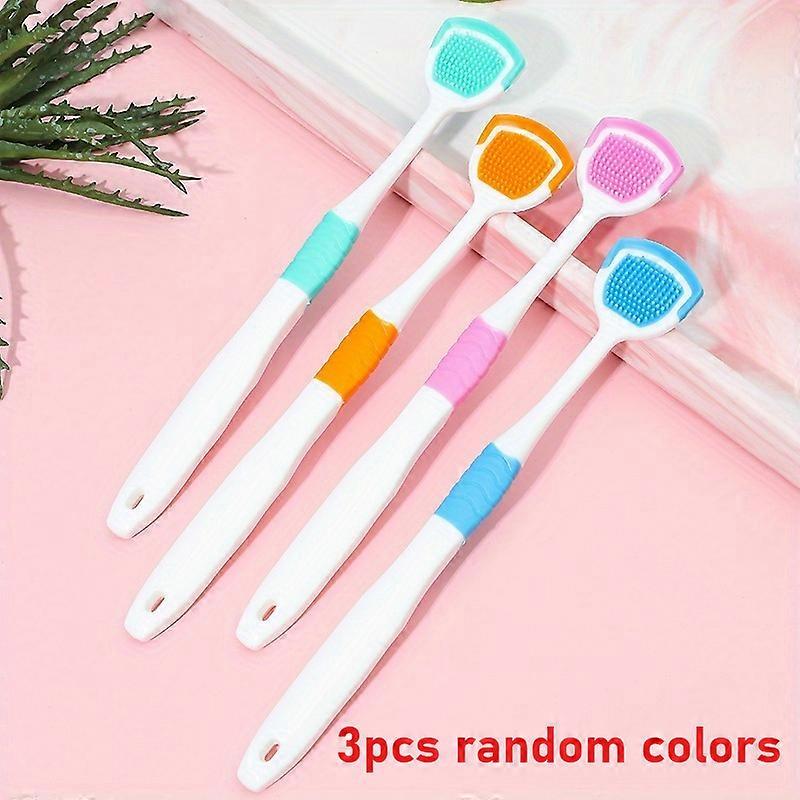 3pcs Tongue Cleaner Scraper, Odorless and Gentle with Soft Silicone Bristles Compact Portable Design for Fresh Breath