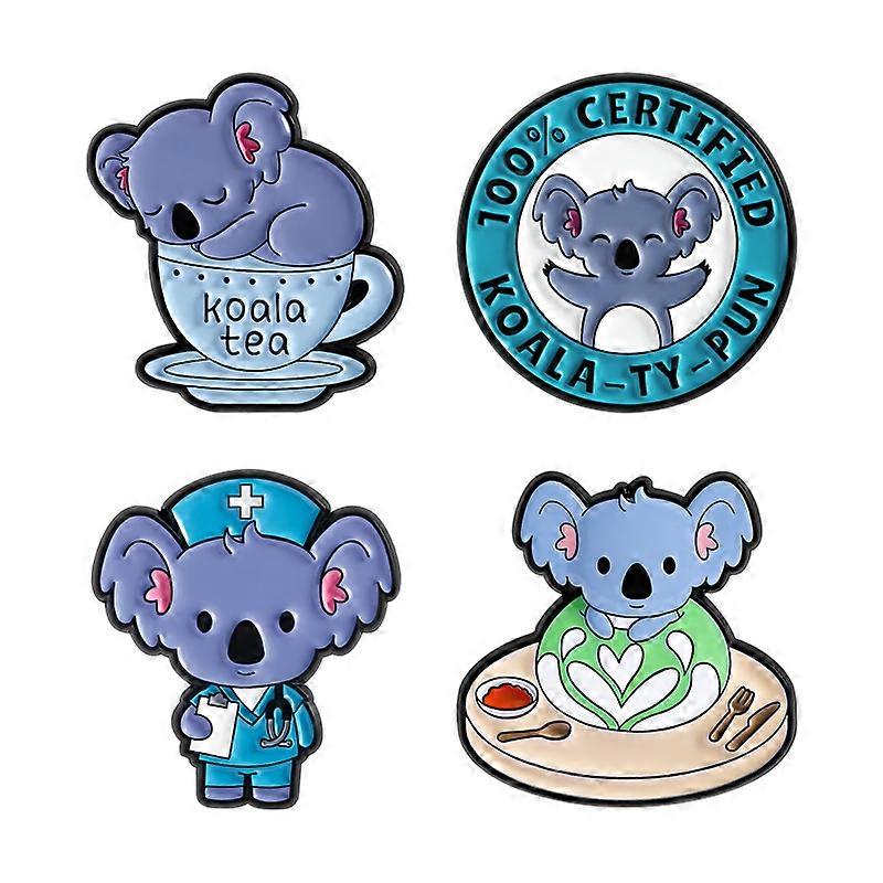 2-4pcs/set Funny Pun Enamel Pins Cartoon Animal Sheep Whale Koala Shrimp Bones Spine Brooch Lapel Badge Jewelry Gift for Friends