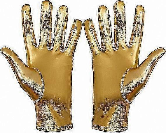 Shiny Gold Stretch Gloves for Men, Women, Kids - Elegant Metallic Costume Accessory for Parties & Events