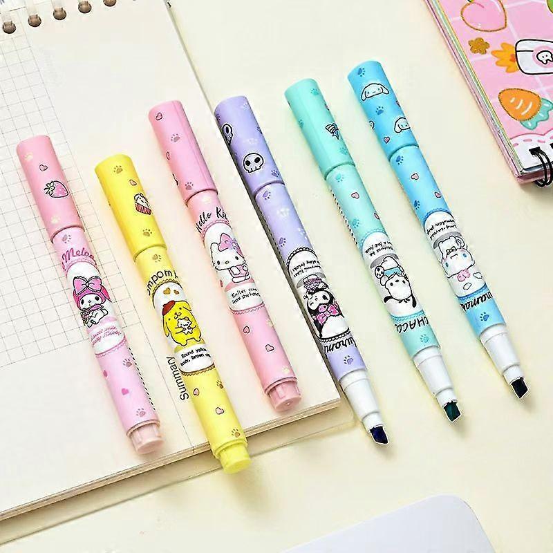 Sanrio Cute Anime Kurimo Hello Kitty Cinnamoroll My Melody Fluorescent Marker Cartoon Multifunctional Student Marking Pen Gift