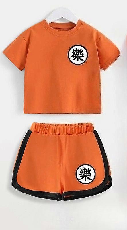 Dragon Ball Kame Sennin Son Goku Anime Peripheral Cartoon Cute Kids Short Sleeve Shorts Comfortable and Breathable Two-Piece Set