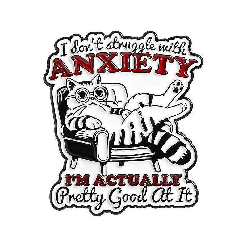 Funny Anxiety Cat Raccoon Enamel Pins I Don't Struggle With Anxiety Mental Health Animal Brooches Lapel Badge Jewelry Gifts