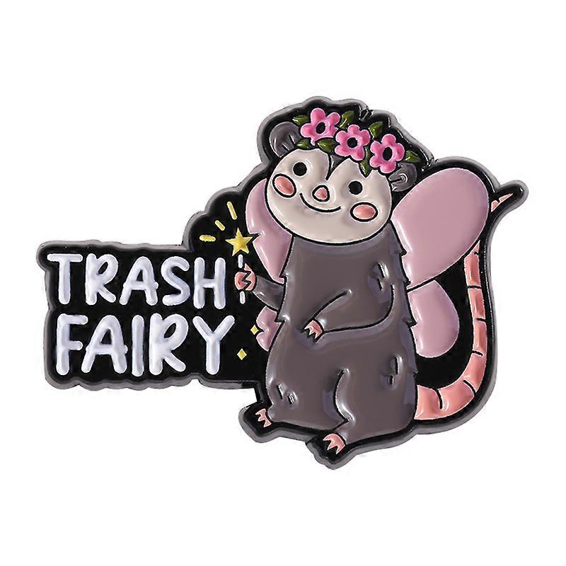 Cute Opossum Enamel Pins Trash Fairy Holding Fairy Sticks Eat Trash Die Fast Screaming Possum Brooches Lapel Badge Jewelry Gifts