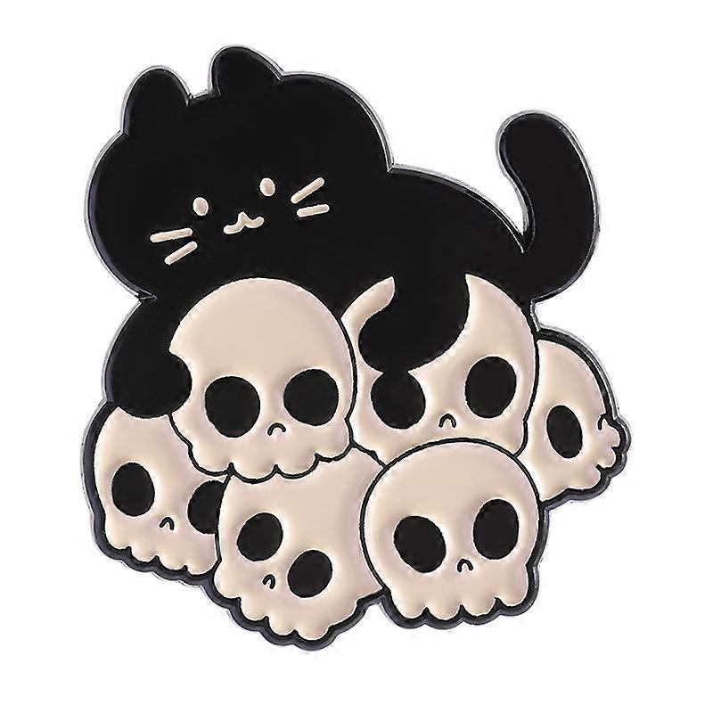 Grim Reaper Hungging Cat Enamel Pins Halloween Cat With Skull Brooches Lapel Badge Punk Gothic Jewelry Gifts for Kids Friends