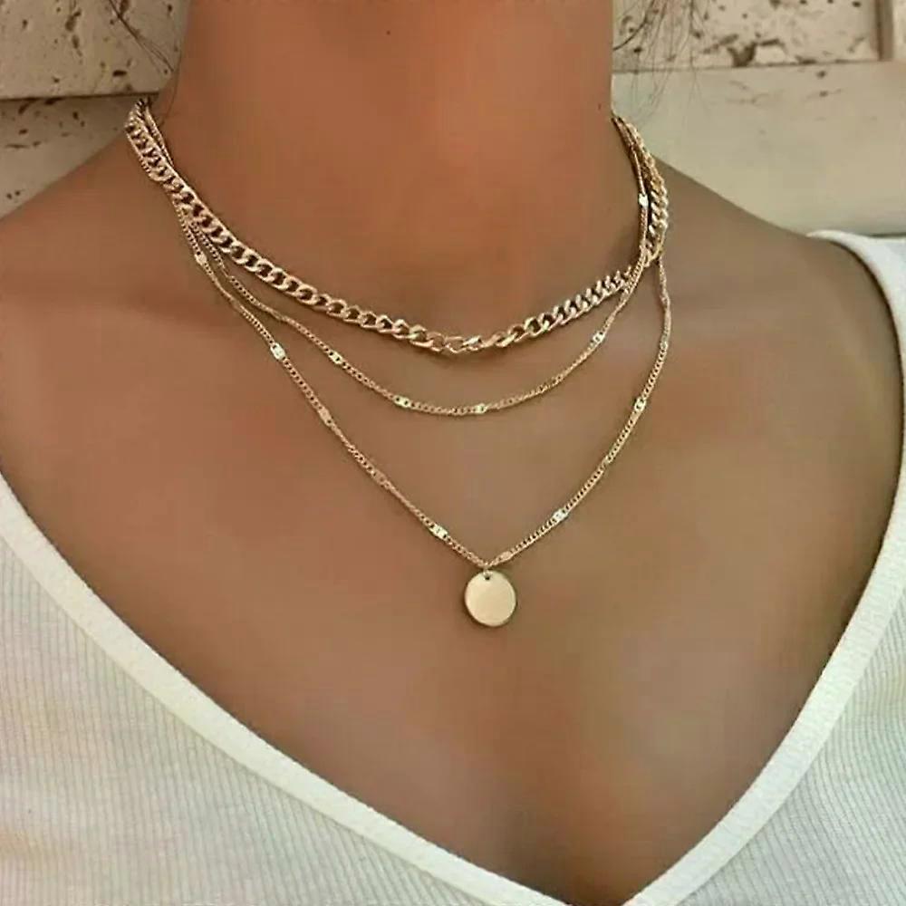 Multilayer Pendant Necklace on Neck Chain Women Crystal Zircon Heart Star Charm Layered Necklace Vintage Female Neck Jewelry Hot