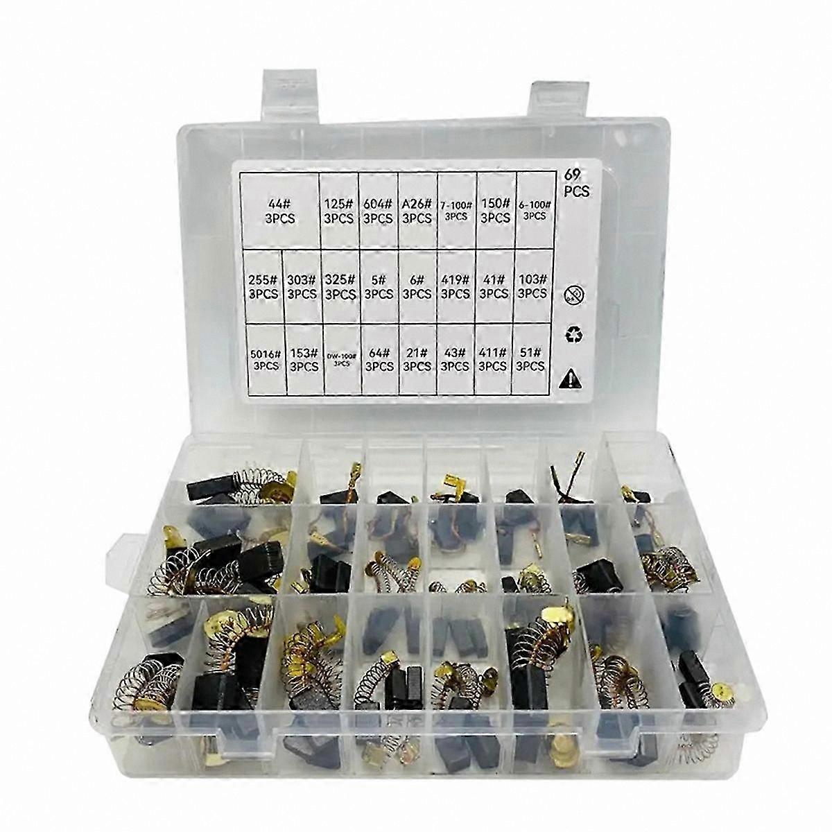 Carbon Brushes Set for Power Tool Repair, 69 Pieces with 23 Sizes for Electric Motors Replacement