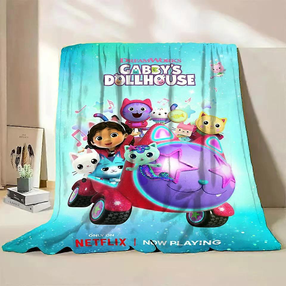Cute Gabbys Dollhouse Flannel Fluffy Fleece Blanket for Home Bedroom Bed Sofa Office Children Cover Adult Soft Blanket Kids Gift