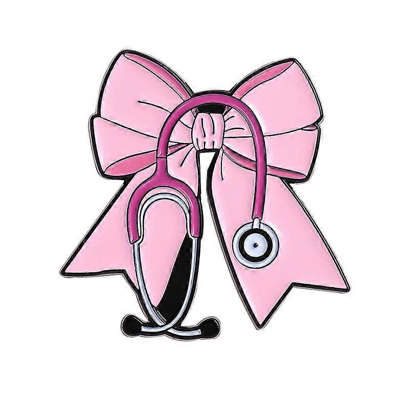 Pink Bowknot Stethoscope Enamel Pins Gothic Halloween Bow Spooky Skeleton Dark Romantic Brooches Lapel Badges Jewelry Gifts