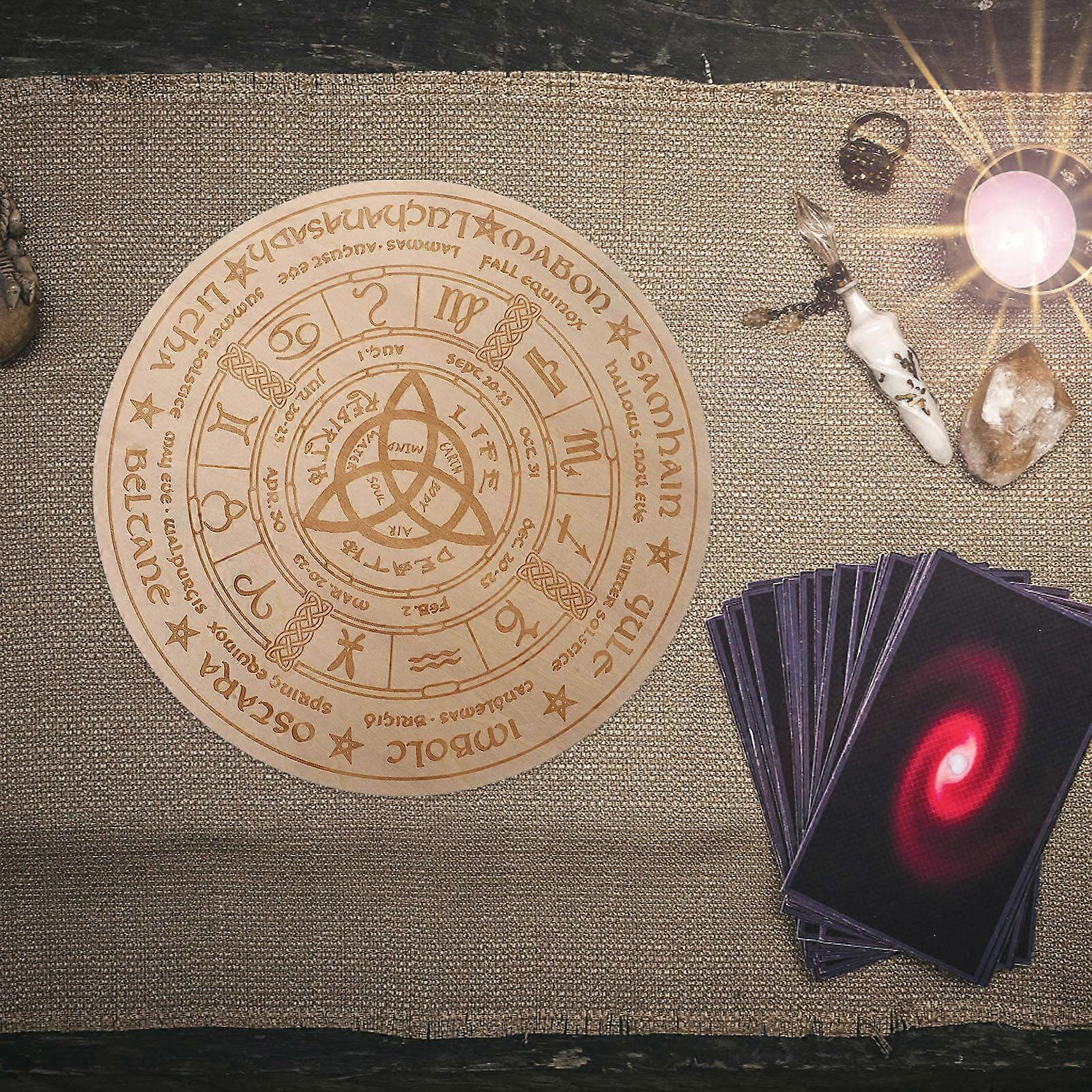 Khaki Wooden Psychic Board for Rituals Ornament 1Pcs Round Decor