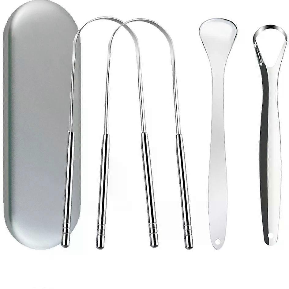 4-piece Stainless Steel U-shaped Tongue Scraper for Cleaning Oral Tongue Coating, Adult Deodorizer for Family set with iron box
