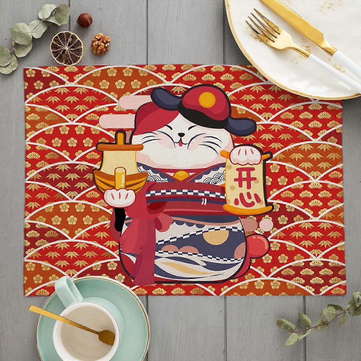 Japanese Lucky Cat Placemat MaNeKiNeKo Kitchen Decor Linen Dining Table Mats Coaster Pad Bowl Coffee Cup Mat Tablecloth 40X30cm