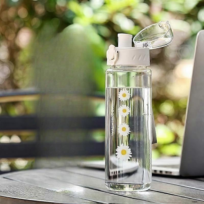 780ml Daisy Flower Plastic Water Bottle Sports Transparent Water Bottle Portable Gym Travel Clear Leakproof Drinking Bottle