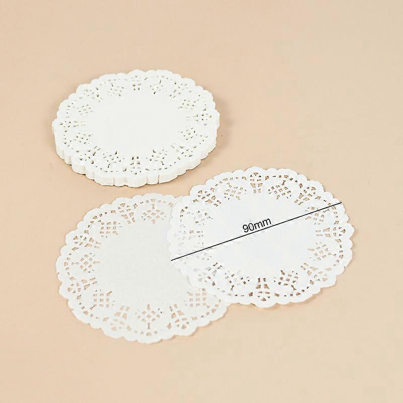 100pcs White Round Lace Paper Doilies Coaster Placemat Cake Mat DIY Gift Packaging Craft Wedding Birthday Party Table Decoration