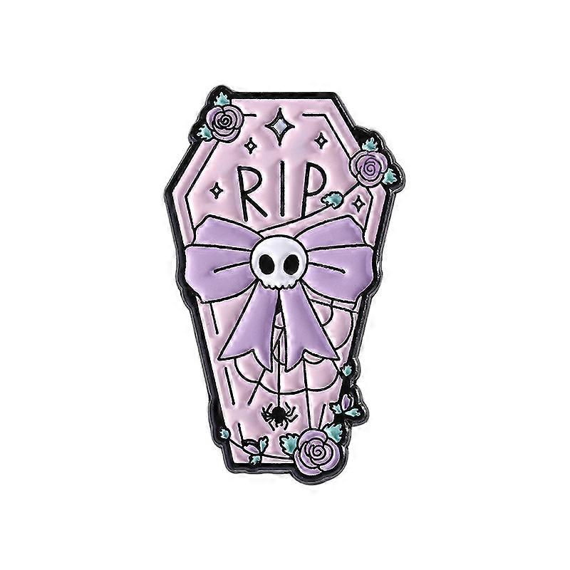 Coffin RIP Bowknot Enamel Pin Spooky Witchy Moon Spider Web Halloween Brooches Lapel Badge Pastel Goth Jewelry Gifts for Friends