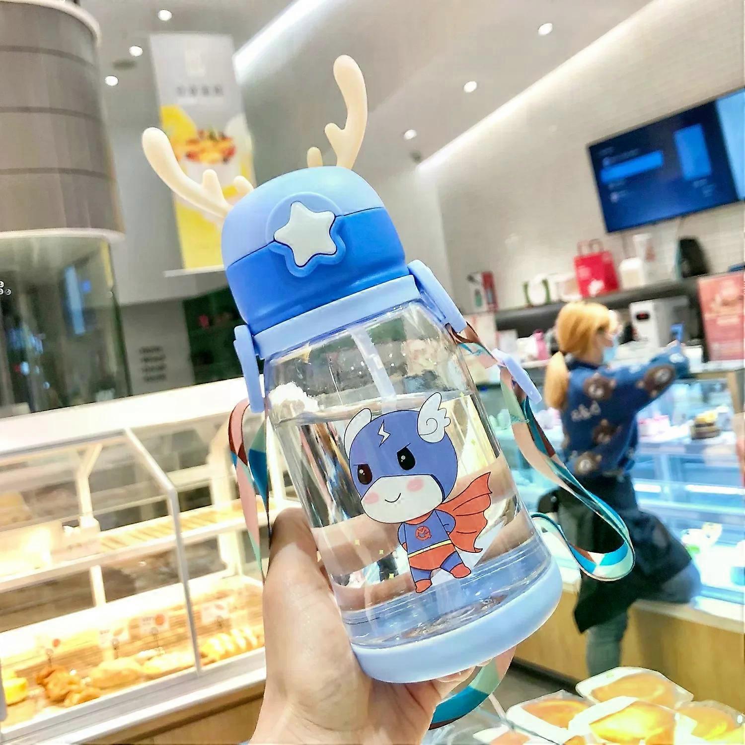 Children's Straw Water Cup Cartoon Antler Plastic Cup Student Carrier Kettle Baby Large Capacity Straw Cup