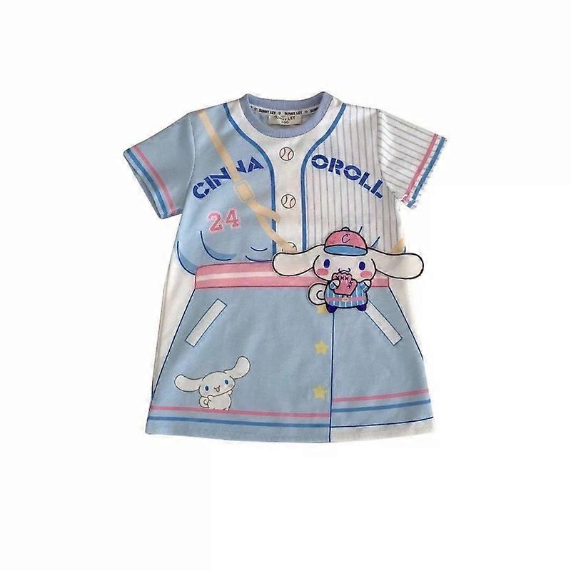 Sweet Girl Summer Kuromi Cinnamoroll Short Sleeve Suit Cute Cartoon Sanrio Printing Sporty Style T-shirt Dress Birthday Gift