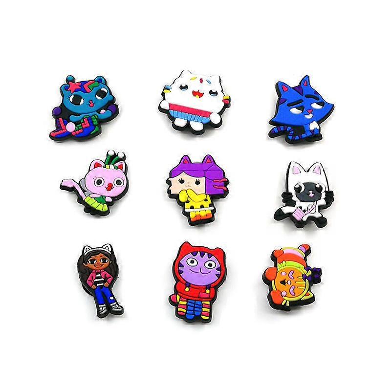 9Pcs/set Anime Gabby Dollhouse Decoration Anime Charms Cute Sandals PVC Badges for Kids Christmas Gifts