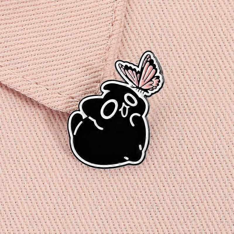 Cute Big Eyes Black Cat With Butterfly Enamel Pin Cartoon Kitten Animal Brooch Lapel Badge Jewelry Gift for Cat Lovers Friends