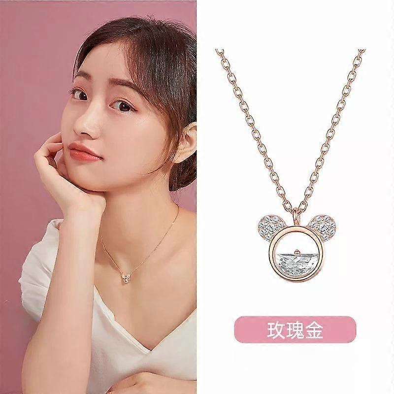 Disney Mickey animation peripheral cartoon girl heart 925 silver zircon necklace niche design high-looking girl birthday gift