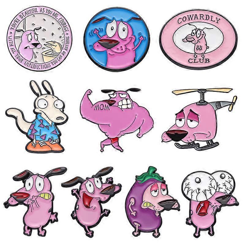 4-10pcs/set Cartoon Anime Characters Enamel Pins Black Cat Raccoon Pink Dogs Red Rabbit Animal Brooches Laple Badge Jewelry Gift