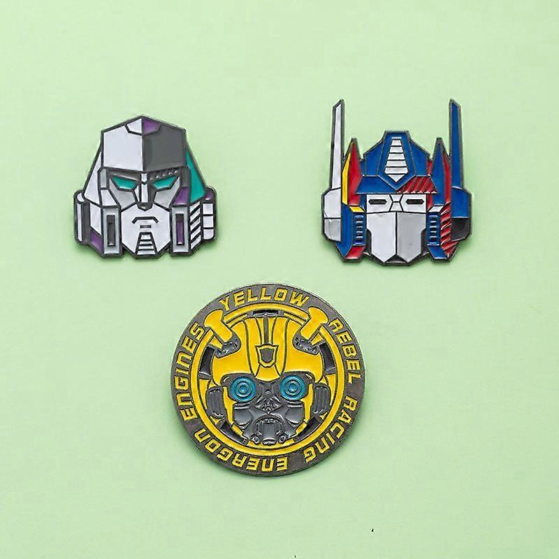 3Pcs/set Transformation Brooch Bumblebee Peripheral Metal Badge Anime Cartoon Badge Student Backpack Accessories Decoration Gift
