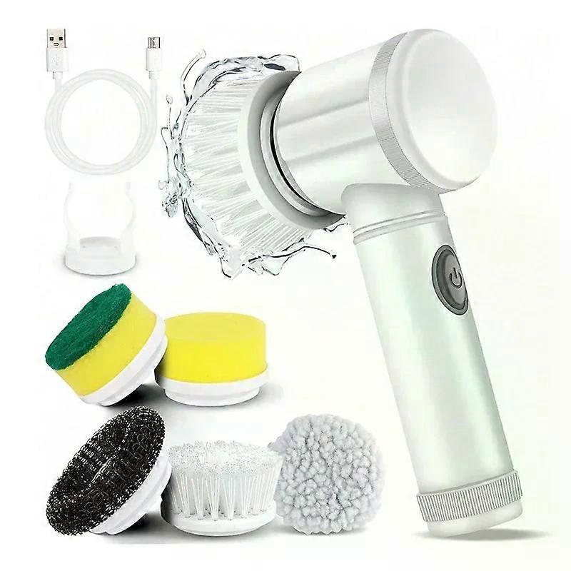 Cordless electric rotary scrubber with 5 replaceable brush heads, rechargeable bathroom and kitchen tile cleaning brush