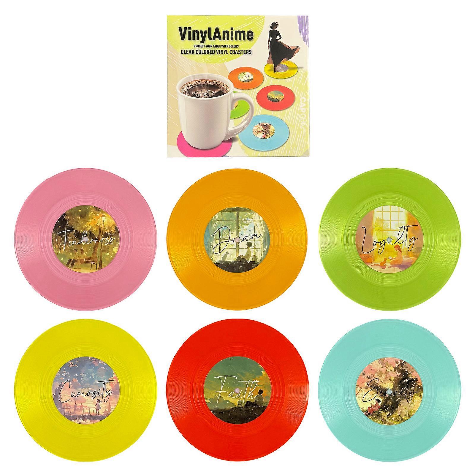 6PCS Retro Colorful Vinyl Record Cup Coaster Anti-slip Coffee Coasters Heat Resistant Mcomic Drink Mug Mat Table Placemat Decors