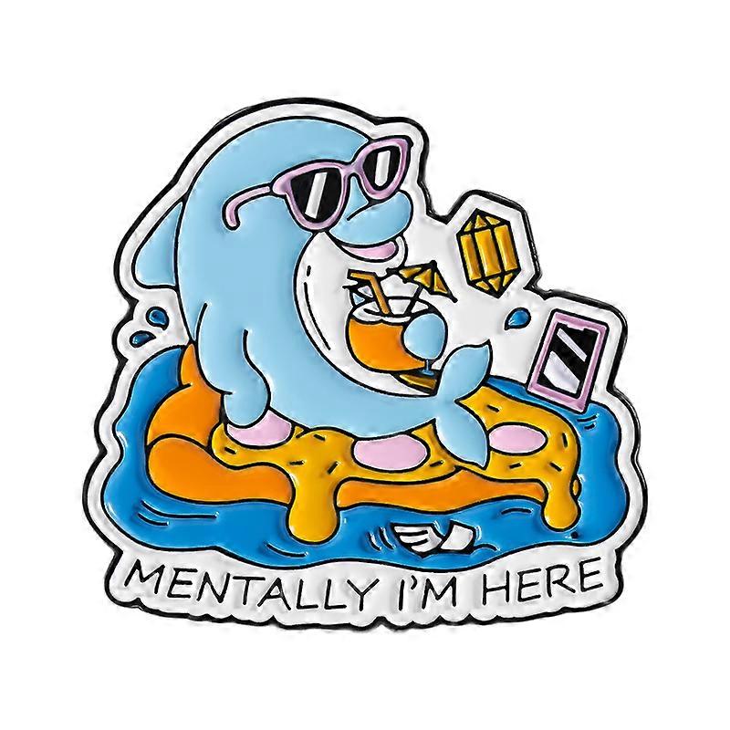 Mentally I'm Here Enamel Pins Funny Quote Ride The Wave Tropical Dolphin Beach Brooches Lapel Badge Jewelry Gifts for Friends