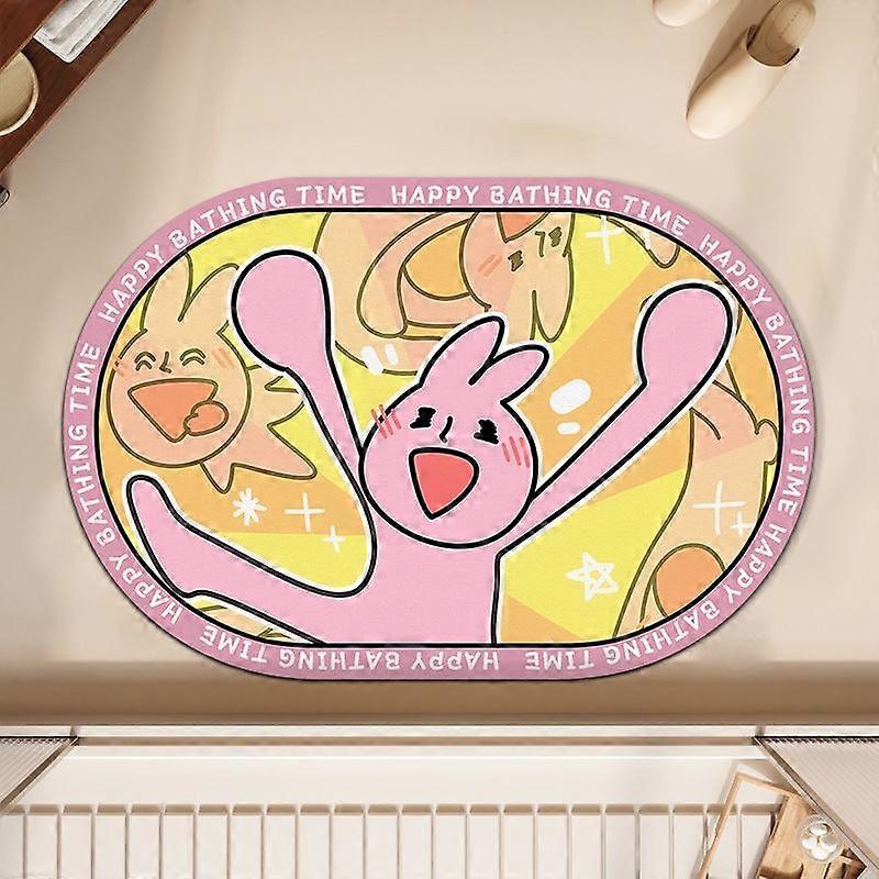 Cartoon pink rabbit diatomaceous absorbent, anti slip, quick drying, Bathroom Small floor mat, Toilet Sink, Bedroom Mat