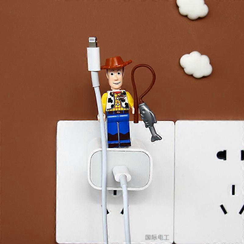 Disney Anime Character Buzz Lightyear Desktop Organizer USB Cable Holder Cartoon Figurine Charging Cable DIY Installation Clip