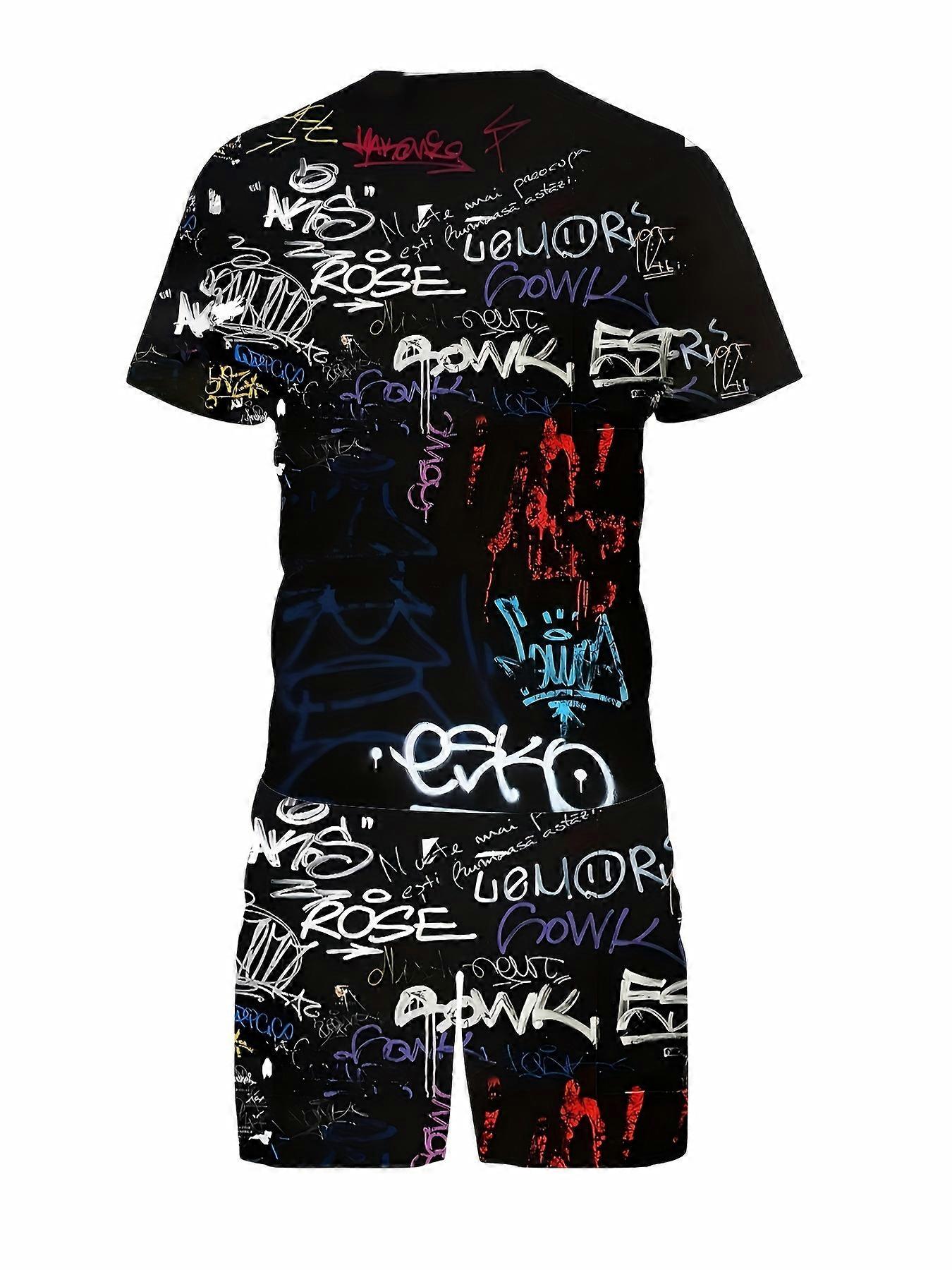 The 2025 summer new men's suit with colorful letter graffiti prints is comfortable, soft, breathable, lightweight, quick-drying