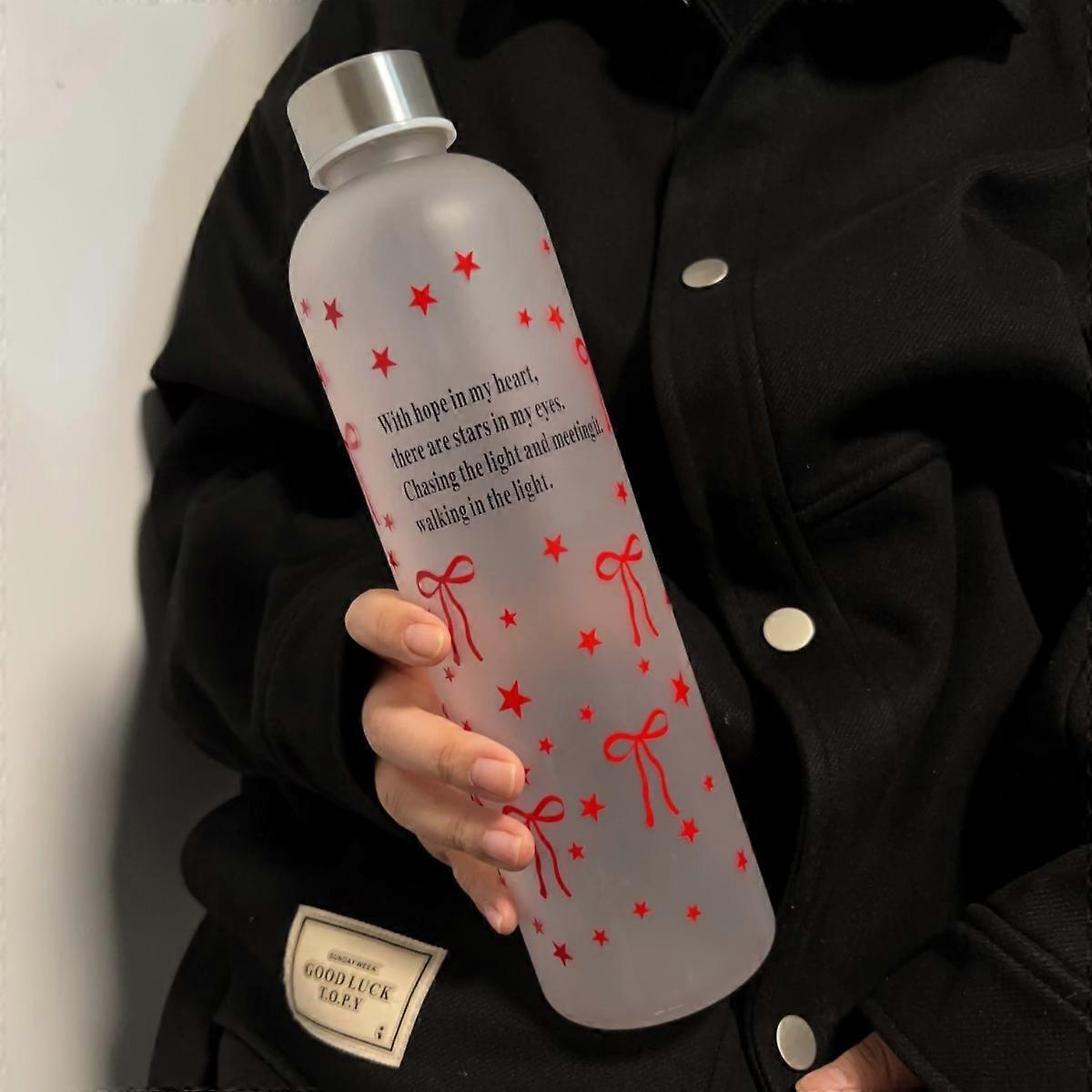 1000ml (33.81fl oz) Bowknot Pattern Water Bottle - Leak-Proof, Portable, Christmas Gift for Friends/Students/Couples,