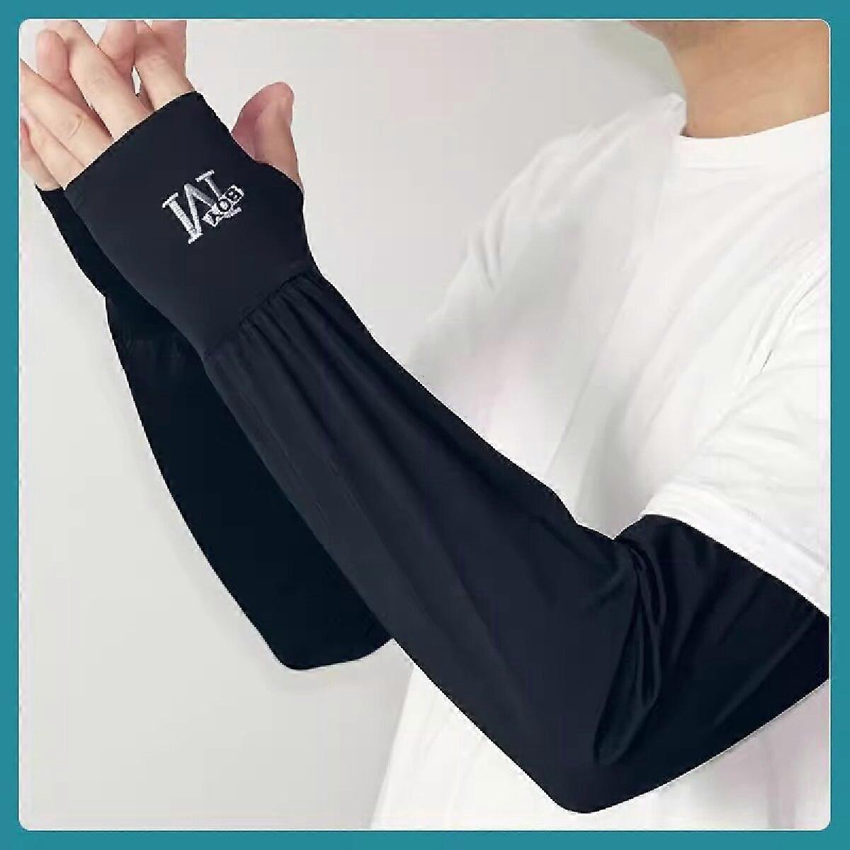 1 Pair Men's Ice Arm Sleeves Lightweight Elastic Sunscreen UV Protection Outdoor Driving Gloves Cool Arm Cover Muff for Men