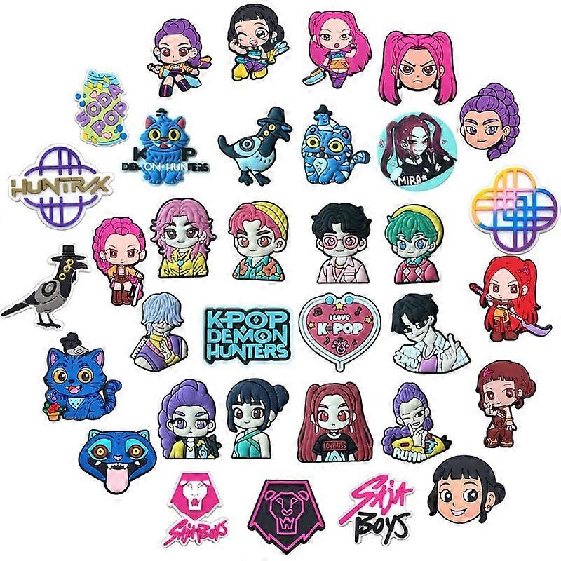 HOT K-POP Demon Hunters Cartoon Shoe Charms 5-100pcs -Fit Clogs Sandal Wristband Kids Shoe Decor Xmas Birthday Party Gifts
