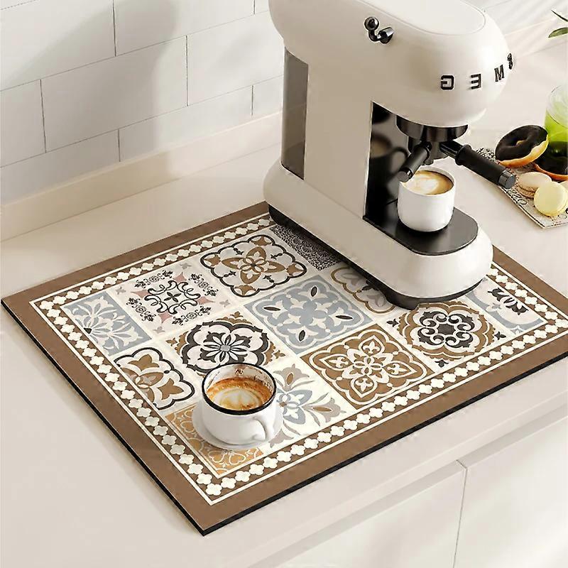VIKAMA Vintage Coffee Machine Mat Absorbent, Quick-Drying, Drainage Mat Non-Slip Dish Drying Mat Kitchen Accessories