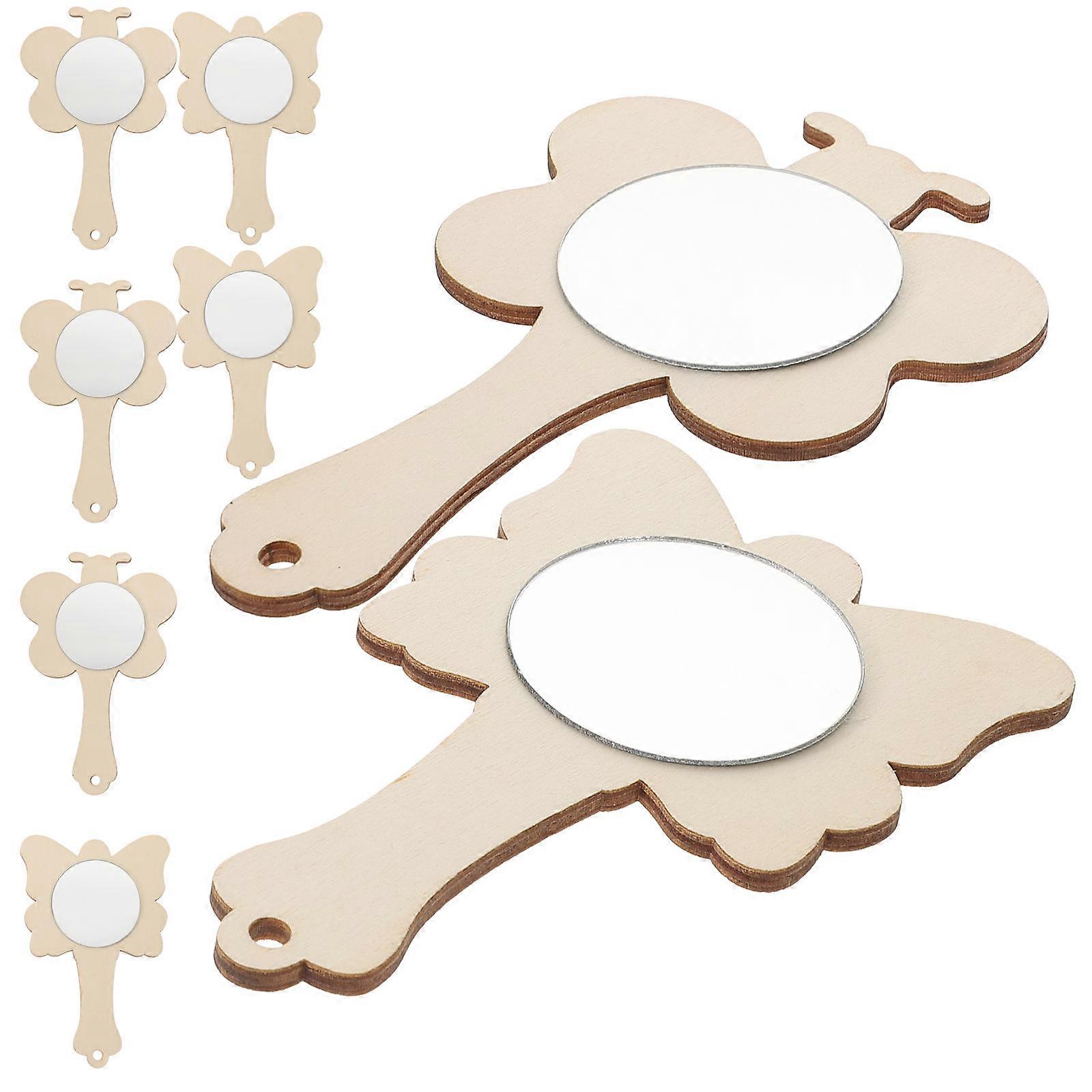 8Pcs DIY Children Wooden Mirror for Painting with Blank Small Craft Mirrors