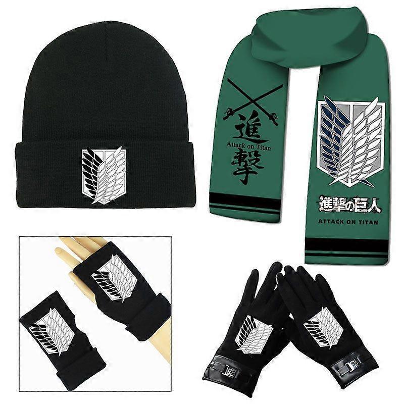 Attack On Titan Eren Jaeger anime peripheral outdoor autumn and winter warm windproof scarf, hat and gloves for boys and girls