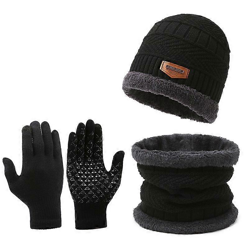 Women Men's Windproof Hat Outdoor Travel Leisure Winter Scarf Gloves Three-Piece Neck One Plus Cashmere Warm Winter Knitted Hat
