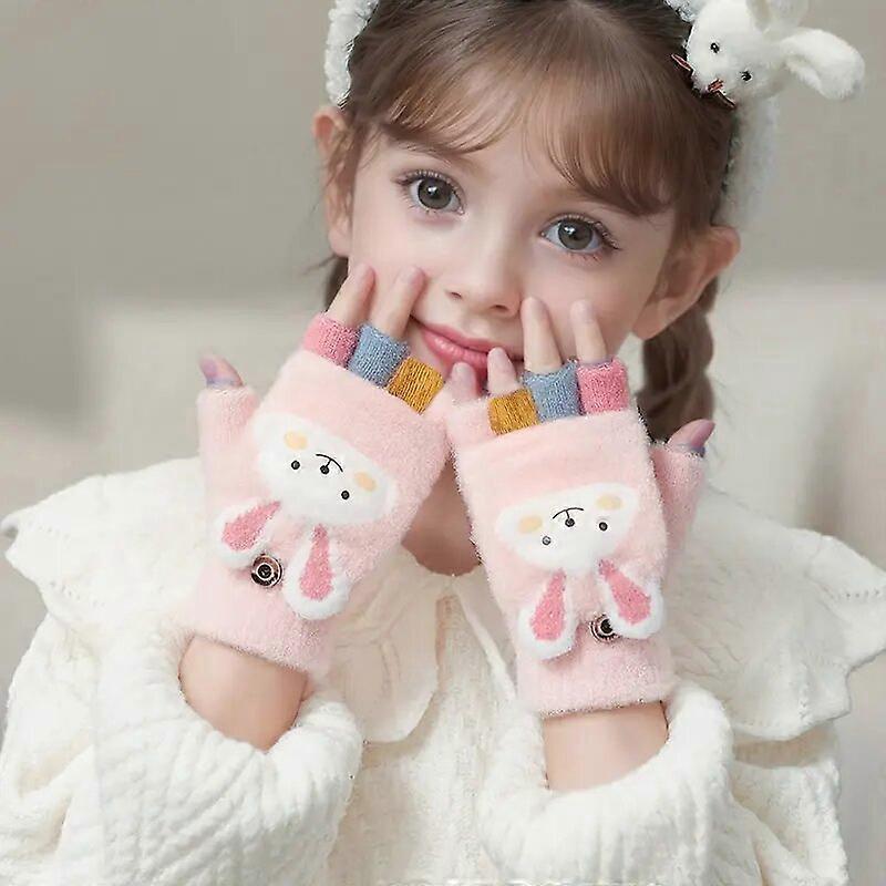 Cozy Cute Cartoon Girls' Winter Gloves Warm Cold-Proof Flip Top Design for Writing and Skiing Polyester Blend Hand Washable