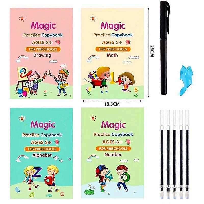 4 Books Reusable Calligraphy Copybook Learning Alphabet Painting Arithmetic Mathematics Kid's Handwriting Practice Book Baby Toy