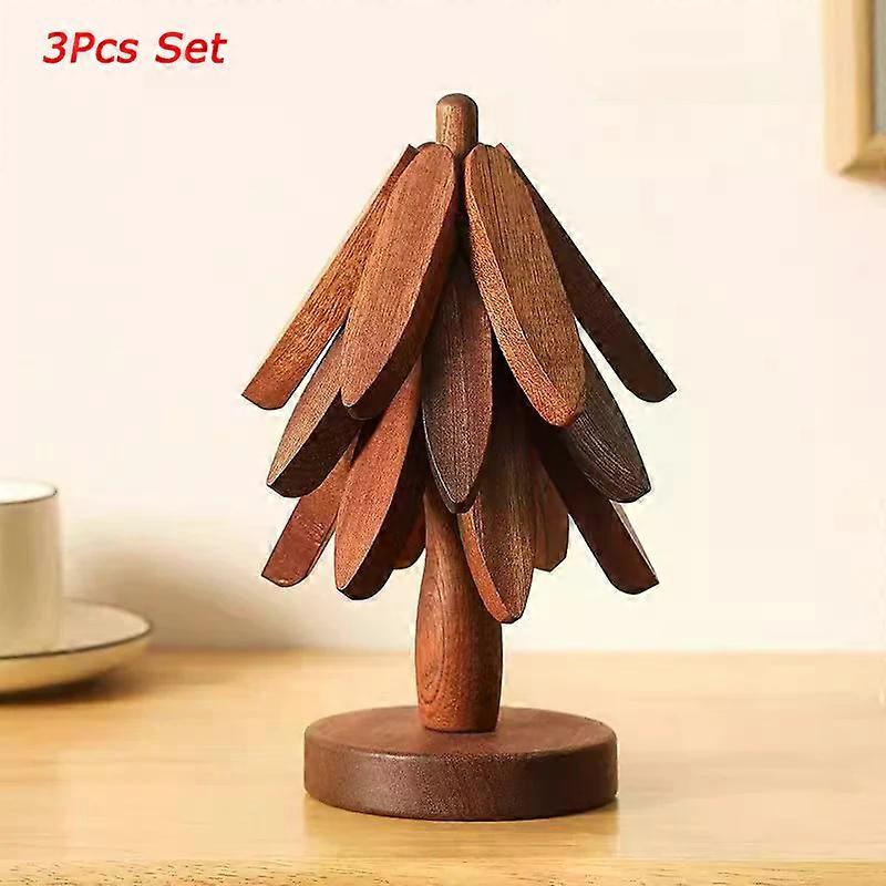 3/4/5PCS Tree Design Stand Bamboo Wooden Trivets Decorative Anti Scald Heat Resistant Table Mat Coaster Wood Placemats Pot
