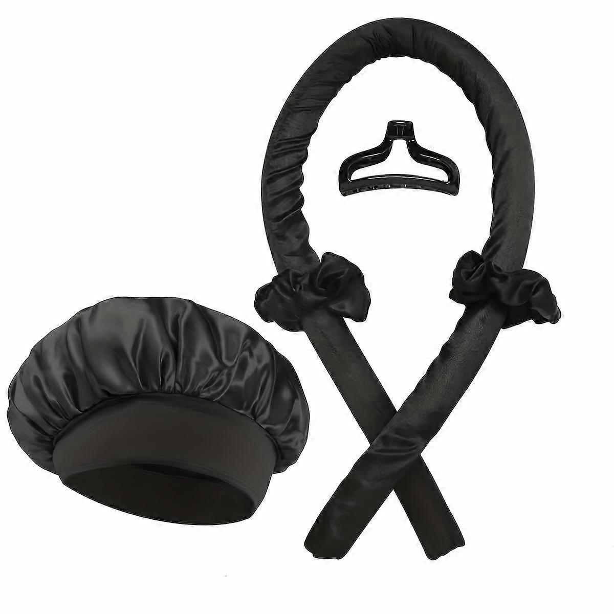 5-Piece Women's Heat-Free Curling Iron and Satin Nightcap Set with Heat-Free Hair Ties, Claw Clips, and Rings for All Hair Types