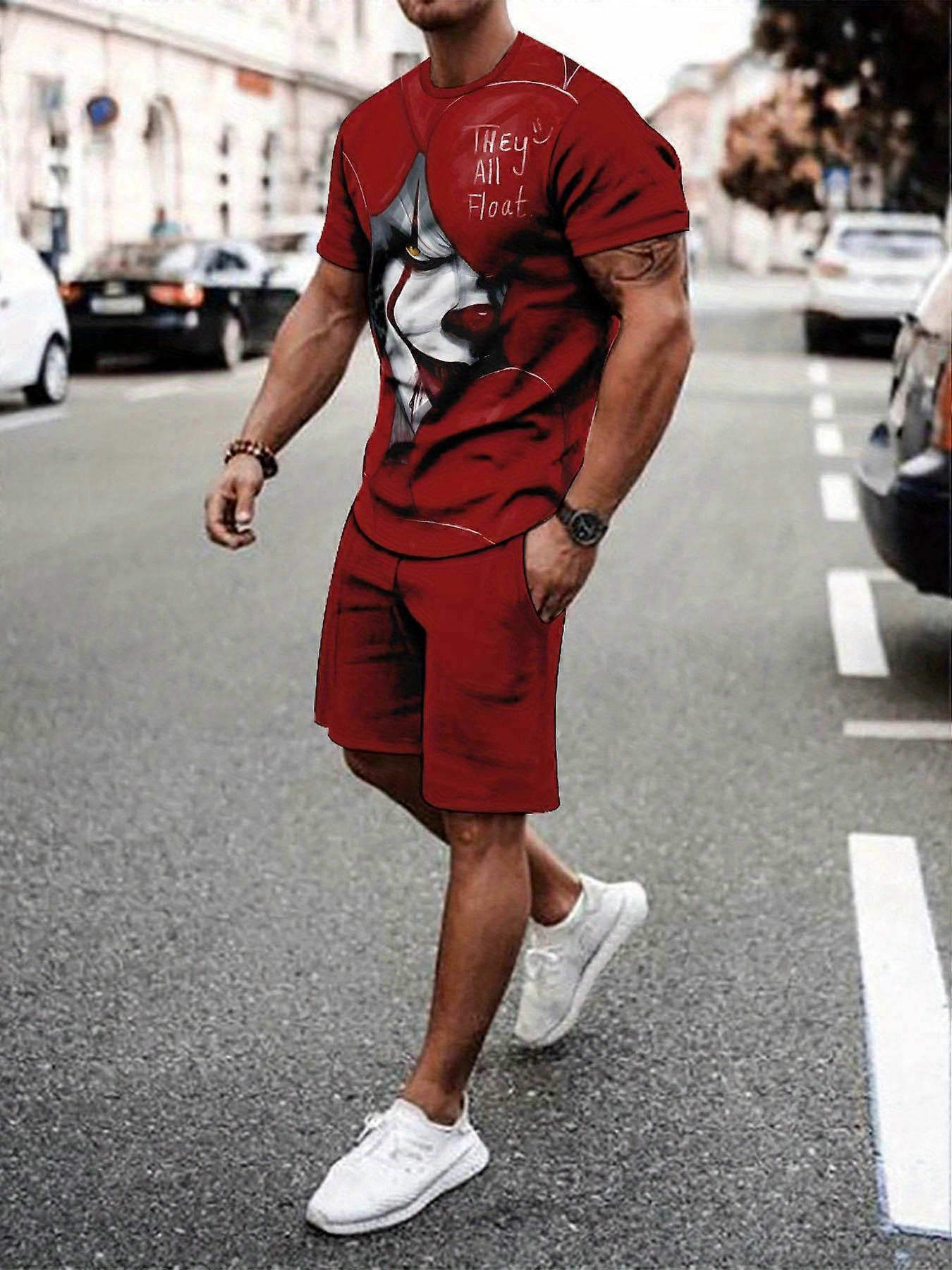 The 2025 summer new men's suit is a casual and fashionable set with breathable outdoor 3D printed patterns and comfortable, soft