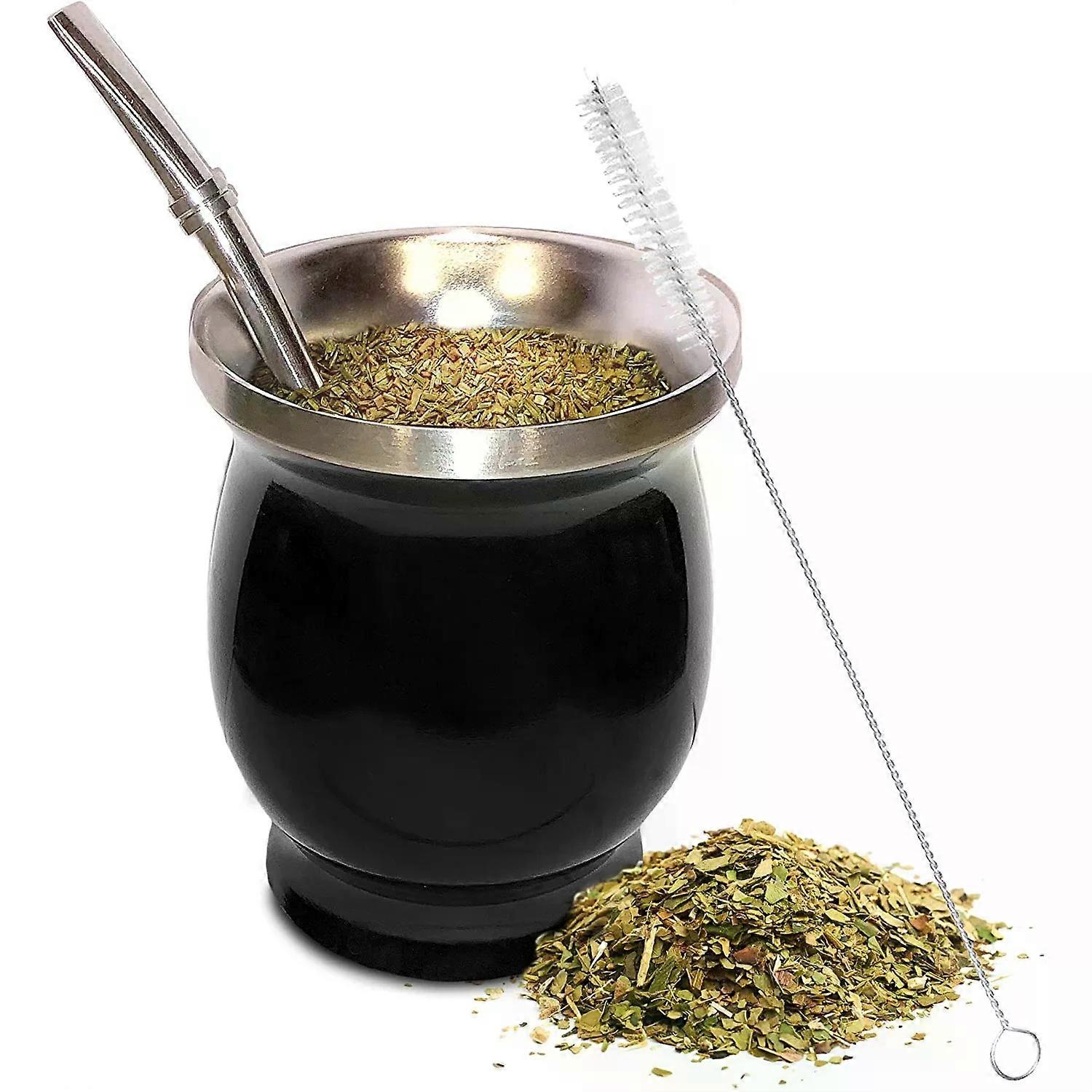 Ma Dai �C tasse �� th�� en acier inoxydable 304, 8oz, Double paroi, gourde argentine, avec cuill��re, paille et brosse de nettoyage, ensemble de
