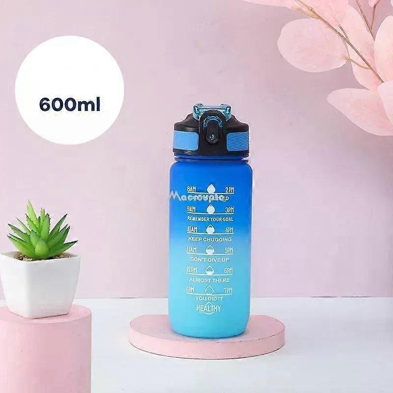 600ML Colorful Water Bottle Motivational Drinking Bottle Sports Water Bottle with Time Marker Portable Reusable Plastic Cups