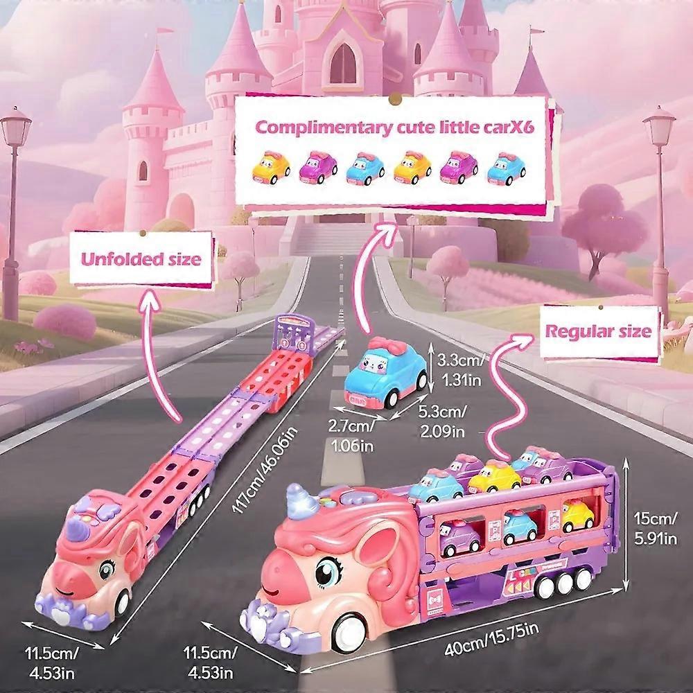 Car Toys for Toddler Girl Unicorn Truck Foldable Race Track with Light & Sound Friction Power Princess Car Birthday Gift for Kid