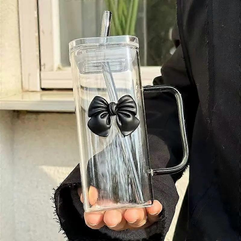 400mL Elegant Butterfly-Decorated Glass Tumbler with Straw & Handle - Reusable Freezer-Safe Water Cup for Coffee Juice Milk