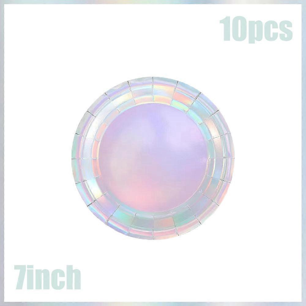10pcs Iridescent Party Plates 7/9 Inch, Holographic Disposable for Birthday Wedding, Rainbow Color Paper Dinner Plates